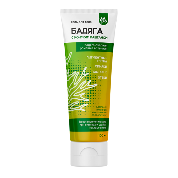 Гель для тела «БАДЯГА» с конским каштаном и комплексом растительных ингредиентов проявляет противовоспалительное действие на повреждённые участки кожи, нормализуя обмен веществ и восстанавливая защитные функции кожи.