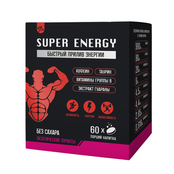 Комплекс SUPER ENERGY разработан специально для спортсменов с целью увеличения выносливости во время физических нагрузок, чтобы тренировка прошла максимально эффективно. Со вкусами и ароматами апельсин + манго, карамель + клубника, груша, экзотические фрукты, мангустин, гуарана.