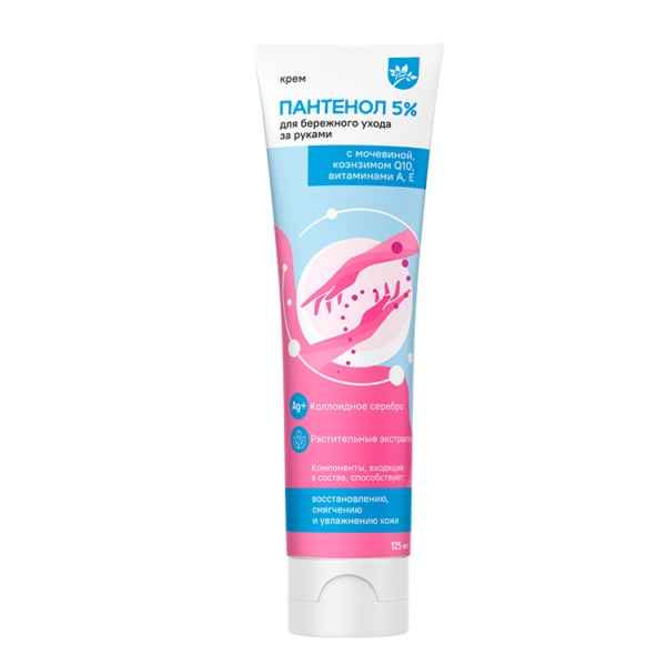 Крем Пантенол 5% для бережного ухода за руками подходит для ухода за кожей с явлениями ксероза, после длительного ношения перчаток, нахождения на ветре, солнце и в воде, работы с землей.