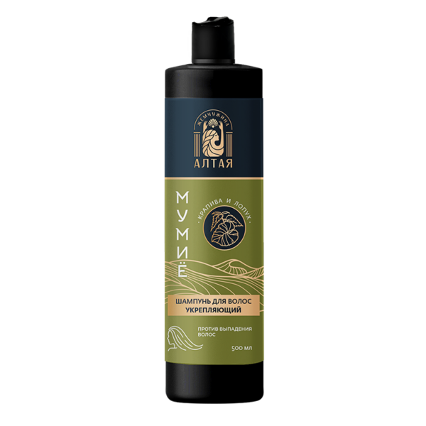 Шампунь «Укрепляющий» с мумие помогает бороться с выпадением волос. Компоненты состава способствуют укреплению волосяных луковиц, улучшению роста волос, придают волосам естественный блеск.