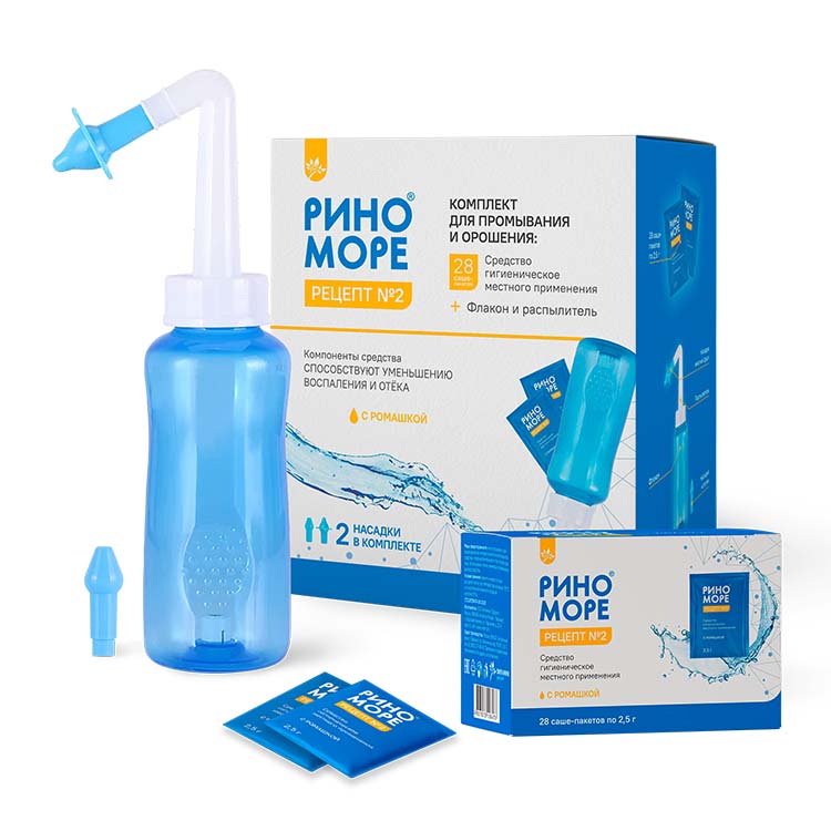 Компоненты, входящие в состав средства «РИНОМОРЕ» Рецепт № 2», способствуют профилактированию или снятию симптомов при острых и хронических заболеваниях слизистой носа и носоглотки; обладают противовоспалительным и противоотечным эффектом.