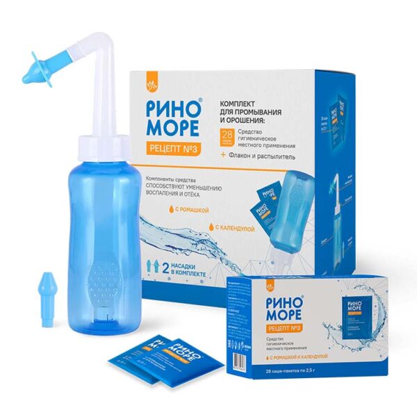 Компоненты, входящие в состав средства «РИНОМОРЕ» Рецепт № 3», способствуют профилактированию или снятию симптомов при острых и хронических заболеваниях слизистой носа и носоглотки; обладают противовоспалительным и противоотечным эффектом.