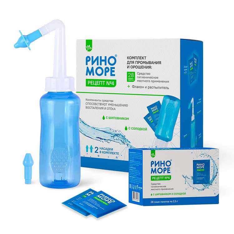Компоненты, входящие в состав средства «РИНОМОРЕ» Рецепт № 4», способствуют профилактированию или снятию симптомов при острых и хронических заболеваниях слизистой носа и носоглотки; обладают противовоспалительным и противоотечным эффектом.